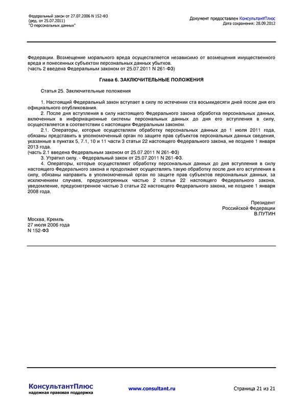 1. Законодательство Российской Федерации в области персональных данных основывается на Конституции Российской Федерации и международных договорах Российской Федерации и состоит из настоящего Федерального закона и других определяющих случаи и особенности обработки персональных данных федеральных законов.