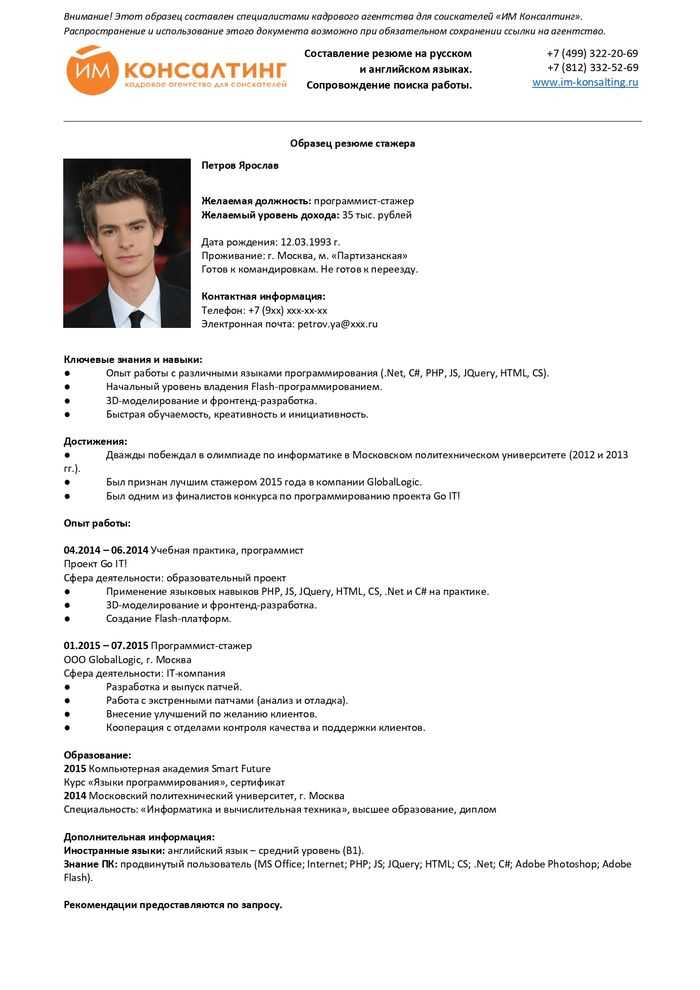 Примеры резюме резюме
