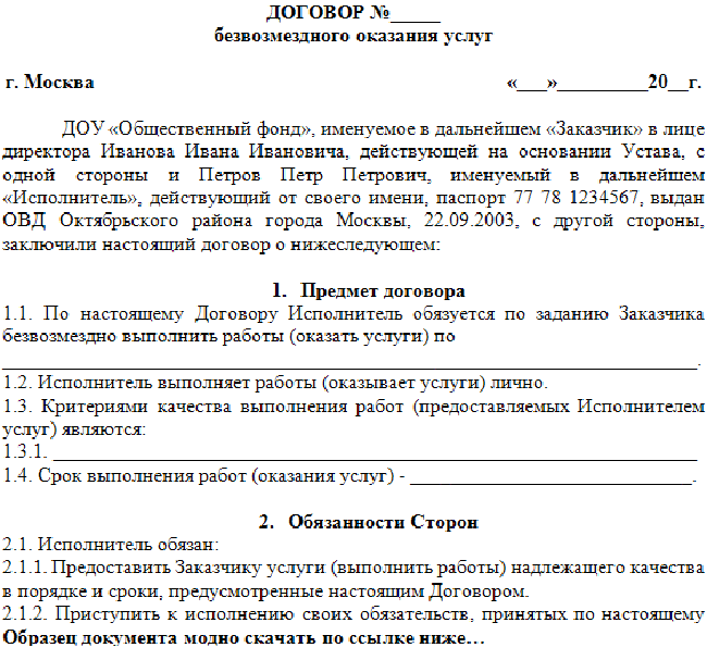 оформлении заказа на услуги или подрядные работы между физическими лицами стоит