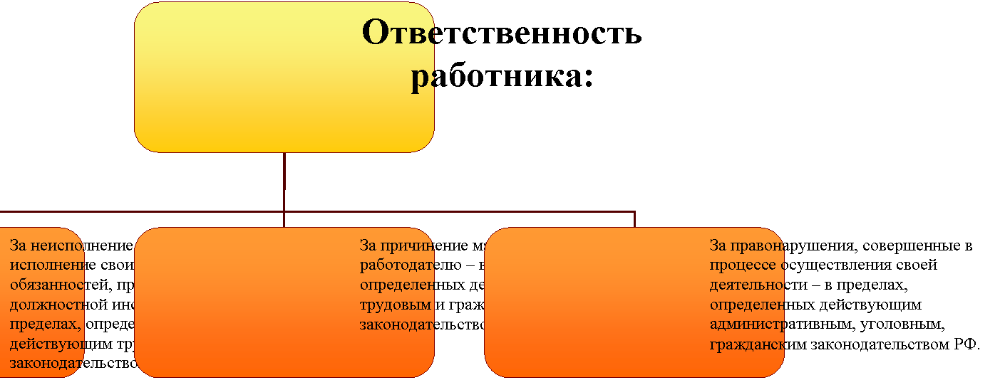 Для соцработника этот пункт будет содержать лишь типы проступков и виды ответственности за них. Каждое конкретное преступление будет разбираться индивидуально, поэтому не имеет смысла перечислять здесь все возможные проступки работников.