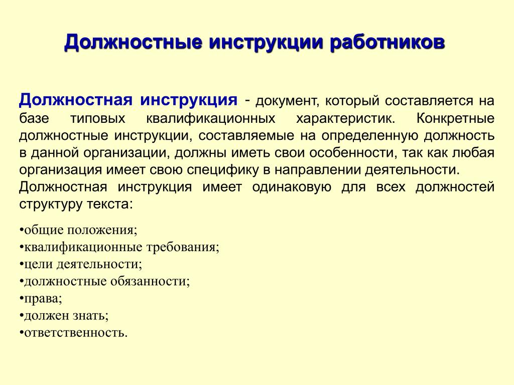 - Текст должностной инструкции с пронумерованными положениями. Разделы должны быть также пронумерованы.