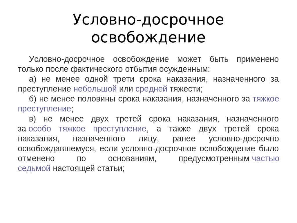 3. Условно-досрочное освобождение может быть применено только после фактического отбытия осужденным: