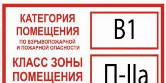 Β ΠΠΏΡΠ΅Π΄Π΅Π»Π΅Π½Π½ΡΠ΅ ΠΏΠΎ ΠΠ£Π ΠΊΠ°ΡΠ΅Π³ΠΎΡΠΈΡ ΠΏΠΎΠΌΠ΅ΡΠ΅Π½ΠΈΡ, Π° ΡΠ°ΠΊΠΆΠ΅ ΠΊΠ»Π°ΡΡ Π·ΠΎΠ½Ρ, ΡΠΊΠ°Π·ΡΠ²Π°Π΅ΡΡΡ Π½Π° ΡΠ°Π±Π»ΠΈΡΠΊΠ΅, ΠΊΠΎΡΠΎΡΡΡ Π²Π΅ΡΠ°ΡΡ Π½Π° Π²Ρ ΠΎΠ΄Π½ΠΎΠΉ Π΄Π²Π΅ΡΠΈ. ΠΠ°ΠΏΡΠΈΠΌΠ΅Ρ, ΡΠ°Π±Π»ΠΈΡΠΊΠ° Ρ ΠΎΠ±ΠΎΠ·Π½Π°ΡΠ΅Π½ΠΈΠ΅ΠΌ Β«Π/Π-ΠΒ» Π³ΠΎΠ²ΠΎΡΠΈΡ ΠΎ ΡΠΎΠΌ, ΡΡΠΎ ΠΏΠΎΠΌΠ΅ΡΠ΅Π½ΠΈΠ΅ Ρ Π°ΡΠ°ΠΊΡΠ΅ΡΠΈΠ·ΡΠ΅ΡΡΡ ΠΏΠΎΠ²ΡΡΠ΅Π½Π½ΠΎΠΉ Π²Π·ΡΡΠ²ΠΎΠΏΠΎΠΆΠ°ΡΠΎΠΎΠΏΠ°ΡΠ½ΠΎΡΡΡΡ ΠΈ ΠΏΡΠΈ Π½ΠΎΡΠΌΠ°Π»ΡΠ½ΠΎΠΉ ΡΠ°Π±ΠΎΡΠ΅ ΠΎΠ±ΠΎΡΡΠ΄ΠΎΠ²Π°Π½ΠΈΡ Π² Π½Π΅ΠΌ ΠΎΠ±ΡΠ°Π·ΡΡΡΡΡ Π²Π·ΡΡΠ²ΠΎΠΎΠΏΠ°ΡΠ½ΡΠ΅ ΡΠΌΠ΅ΡΠΈ.