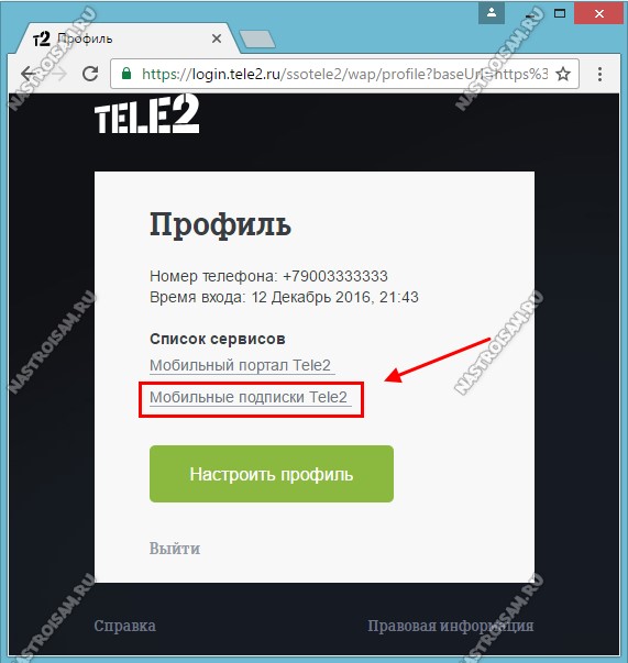 tele2.ru и перейдите в раздел «Тариф и услуги», выберите пункт «Управление услугами».