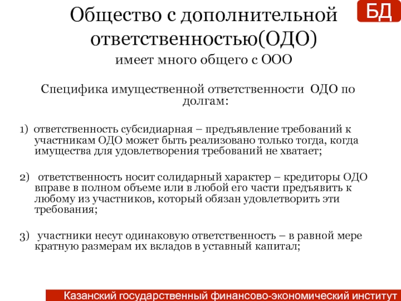 - солидарная субсидиарная ответственность по обязательствам компании находится в пределах неоплаченной части доли;
