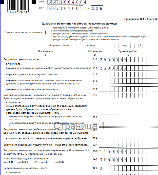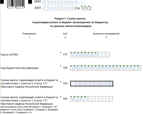 Заполнение таблицы для плательщиков ЕН групп 2 или 3