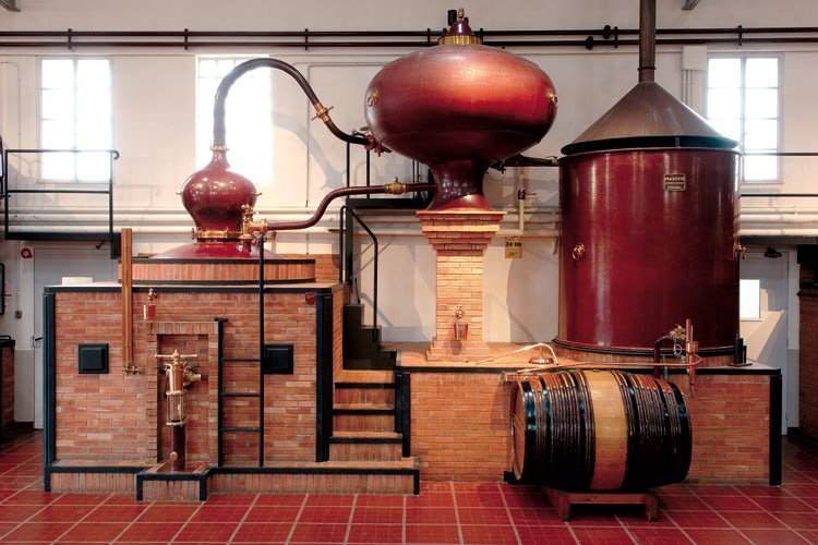 Во время перегонки в медных сосудах, в отличие от дистилляции в оловянных или стальных кубах, образуется много ароматических соединений, необходимых для качественного напитка: альдегидов, сложных эфиров, фурфурола, соединений фуранового ряда.