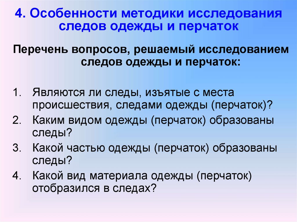 В случае отсутствия обуви подозреваемого перед экспертом могут быть поставлены вопросы, связанные с установлением групповой принадлежности: