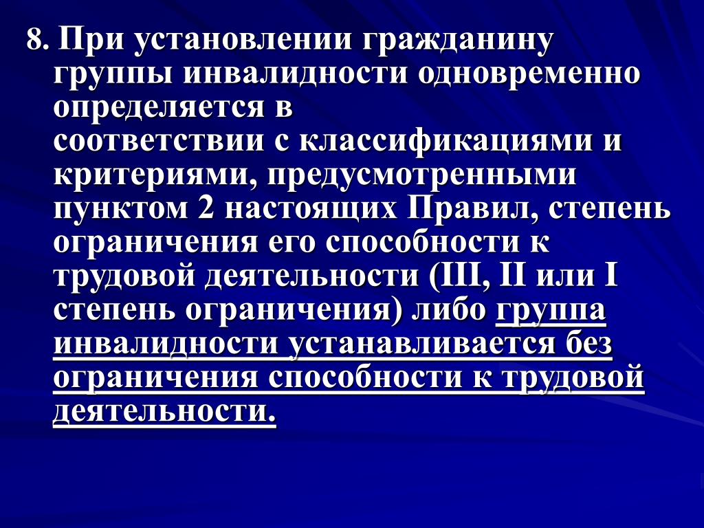 Инвалидность до 16 лет будет устанавливаться при наследственных заболеваниях кожи, синдромах Дауна и Ретта, прогрессирующих мышечных дистрофиях, врожденных миопатиях и при повторном переосвидетельствовании детей с аутизмом, синдромом Аспергера, атипичным аутизмом и т.д. Также регламентирован порядок переосвидетельствования ранее установленного срока инвалидности и утраты трудоспособности при изменении состояния здоровья. Теперь на досрочное переосвидетельствование инвалиды будут направляться не только при ухудшении состояния здоровья, но и при его улучшении.