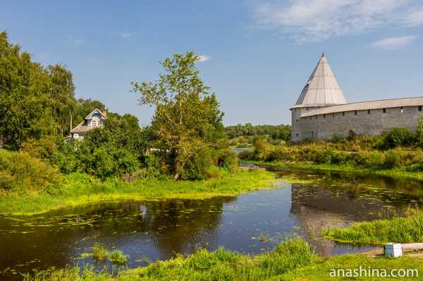 Немного о местоположении. Староладожская крепость находится на небольшом мыске, образованном маленькой речкой Ладожкой и великой рекой Волховом – когда-то являвшейся главной транспортной артерией Древней Руси. Крепость в то время имела важное стратегическое положение – не давая врагу пройти от Балтийского моря вглубь русских земель.Держа под неусыпным контролем транспортные пути на Волхове, Староладожская крепость, защищённая с 2-х сторон водными преградами, была труднодосягаема для врага. Кстати, интересный факт о реке Волхов – река известна тем, что время от времени может менять направление течения.