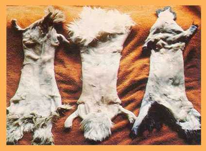 После убоя шкура снимается чулком. Надолго оставлять ее в не расправленном виде нельзя (может загнить). Хранить нужно следующим образом: