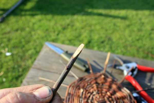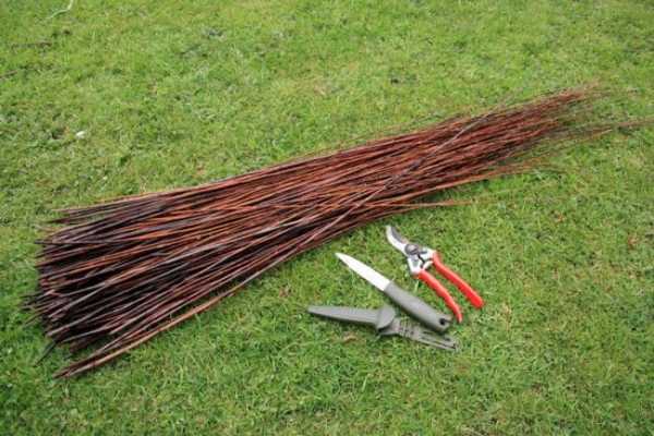 Для работы понадобятся ивовые прутья и минимум инструментов: нож и садовые ножницы.