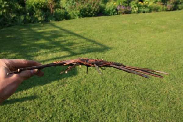 13. Возьмите более тонкую ветку и закрутите ее вокруг ручки.