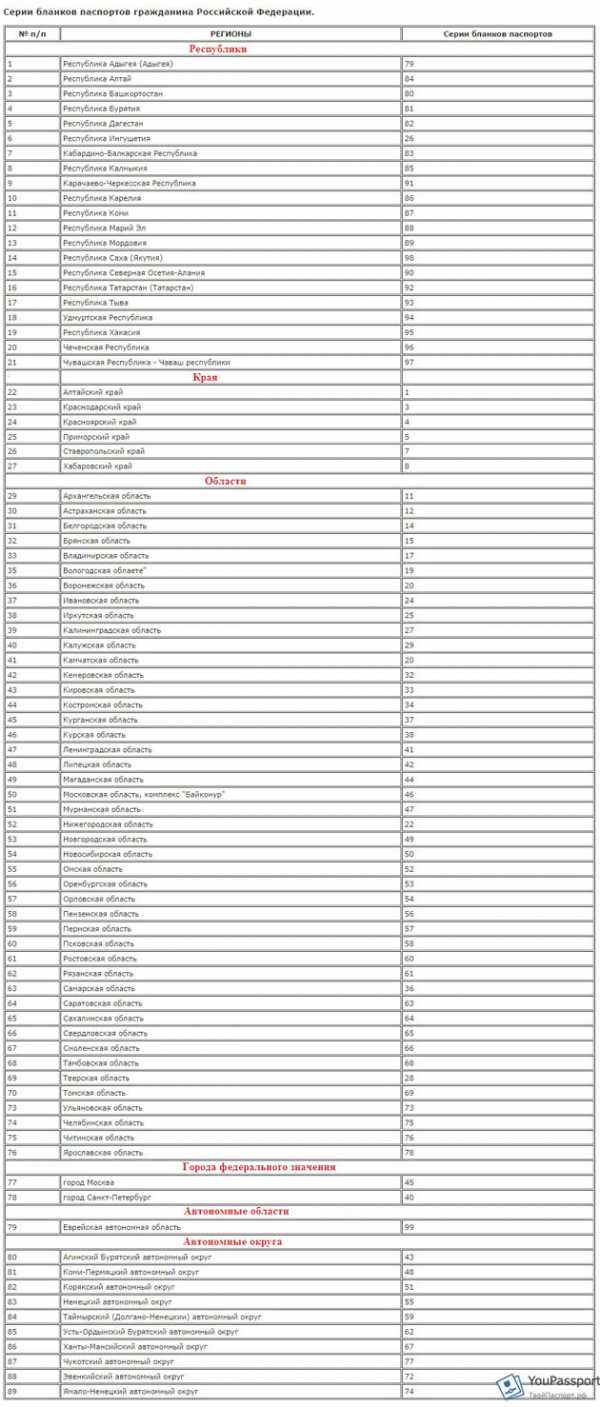 У каждого региона есть своя цифра, которая используется при обозначении серии паспорта.