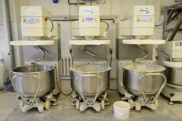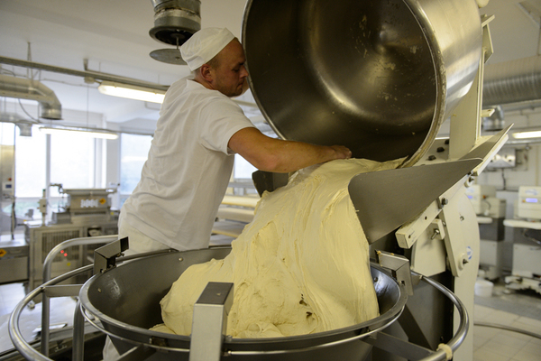 Для ржаного хлеба дополнительно используют био-закваску, которую также готовят сами. На её приготовление уходит 48 часов. После дозации все ингредиенты отправляют в автоматическую машину для замешивания. Через 18-20 минут тесто готово.
