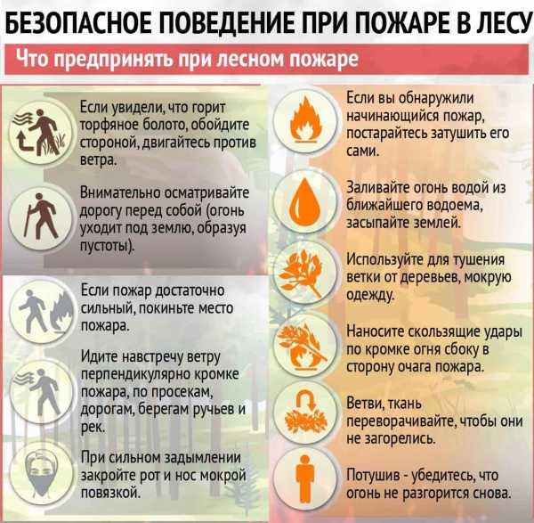 • укрываться от пожара следует на голых островах и отмелях, расположенных посреди больших озер, на оголенных участках болот, на скальных вершинах хребтов, расположенных выше уровня леса, на ледниках;