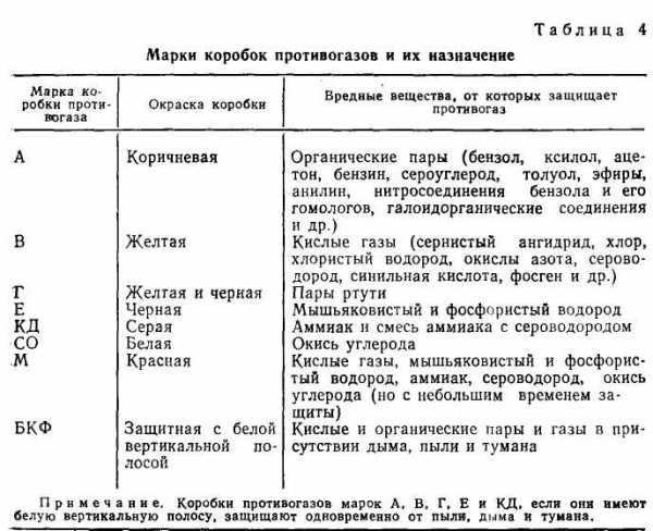 Фильтрующие противогазы применяются в случаях, когда состав ядовитых паров и газов более или менее известен, а объемное содержание вредных веществ и свободного кислорода в воздухе равно соответственно не более 0,5 и не менее 18%.