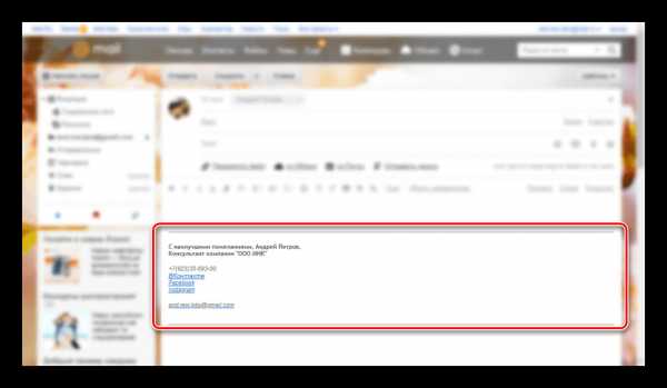 ΠΠ΄Π΅ΡΡ ΡΡ Π΅ΠΌΠ° Π΄Π΅ΠΉΡΡΠ²ΠΈΠΉ ΠΏΡΠΈΠΌΠ΅ΡΠ½ΠΎ ΡΠ° ΠΆΠ΅. ΠΡΠΆΠ½ΠΎ Π·Π°ΠΉΡΠΈ Π² ΡΠ²ΠΎΠΉ ΡΠ»Π΅ΠΊΡΡΠΎΠ½Π½ΡΠΉ ΡΡΠΈΠΊ, Π½Π°Π²Π΅ΡΡ Ρ Π²ΡΠ±ΡΠ°ΡΡ ΠΌΠ΅Π½Ρ Β«ΠΠ°ΡΡΡΠΎΠΉΠΊΠΈΒ» (ΠΏΡΠΈ Π½Π΅ΠΎΠ±Ρ ΠΎΠ΄ΠΈΠΌΠΎΡΡΠΈ ΡΠ½Π°ΡΠ°Π»Π° ΠΊΠ»ΠΈΠΊΠ½ΡΠ² ΠΏΠΎ ΠΊΠ½ΠΎΠΏΠΊΠ΅ Β«ΠΡΡΒ»), Π·Π°ΡΠ΅ΠΌ ΠΏΠ΅ΡΠ΅ΠΉΡΠΈ Π½Π° Β«ΠΠΌΡ ΠΎΡΠΏΡΠ°Π²ΠΈΡΠ΅Π»Ρ ΠΈ ΠΏΠΎΠ΄ΠΏΠΈΡΡΒ». ΠΠ΄Π΅ΡΡ ΠΌΠΎΠΆΠ½ΠΎ Π·Π°Π΄Π°ΡΡ ΡΡΠΈ Π²Π°ΡΠΈΠ°Π½ΡΠ° ΠΈ ΡΠΎΠ³ΠΎ, ΠΈ Π΄ΡΡΠ³ΠΎΠ³ΠΎ. ΠΠ΄ΠΈΠ½ Π²Π°ΡΠΈΠ°Π½Ρ Π²Ρ Π²ΡΠ±Π΅ΡΠ΅ΡΠ΅ ΠΏΠΎ ΡΠΌΠΎΠ»ΡΠ°Π½ΠΈΡ, ΠΈ ΠΎΠ½ Π±ΡΠ΄Π΅Ρ Π²ΡΡΠ°Π²Π»ΡΡΡΡΡ Π°Π²ΡΠΎΠΌΠ°ΡΠΈΡΠ΅ΡΠΊΠΈ Π² ΠΏΠΈΡΡΠΌΠΎ. Π‘ΡΡΠ΅ΡΡΠ²ΡΠ΅Ρ ΠΎΠ³ΡΠ°Π½ΠΈΡΠ΅Π½ΠΈΠ΅ β 255 ΡΠΈΠΌΠ²ΠΎΠ»ΠΎΠ². ΠΡΠΎΡ Π»ΠΈΠΌΠΈΡ Π½Π΅ ΠΌΠΎΠΆΠ΅Ρ ΠΏΡΠ΅Π²ΡΡΠ°ΡΡ Π²Π°ΡΠ° ΠΏΠΎΠ΄ΠΏΠΈΡΡ Π² ΡΠ»Π΅ΠΊΡΡΠΎΠ½Π½ΠΎΠΌ ΠΏΠΈΡΡΠΌΠ΅. ΠΡΠΈΠΌΠ΅Ρ: Π€.Π.Π., Π΄ΠΎΠ»ΠΆΠ½ΠΎΡΡΡ, Π½ΠΎΠΌΠ΅Ρ ΡΠ΅Π»Π΅ΡΠΎΠ½Π°, Π°Π΄ΡΠ΅Ρ ΡΠ°ΠΉΡΠ° β ΡΡΠΈ Π΄Π°Π½Π½ΡΠ΅ Π΄ΠΎΠ»ΠΆΠ½Ρ Π²ΠΏΠΎΠ»Π½Π΅ ΡΠΌΠ΅ΡΡΠΈΡΡΡΡ Π² Π΄Π°Π½Π½ΠΎΠ΅ ΠΊΠΎΠ»ΠΈΡΠ΅ΡΡΠ²ΠΎ Π·Π½Π°ΠΊΠΎΠ². ΠΠΎΠΆΠ½ΠΎ ΡΠ°ΠΊΠΆΠ΅ Π·Π°Π΄Π°ΡΡ ΡΠ°ΡΠΏΠΎΠ»ΠΎΠΆΠ΅Π½ΠΈΠ΅ ΠΏΠΎΠ΄ΠΏΠΈΡΠΈ ΠΏΠ΅ΡΠ΅Π΄ ΠΈΠ»ΠΈ ΠΏΠΎΡΠ»Π΅ ΡΠΈΡΠΈΡΡΠ΅ΠΌΠΎΠ³ΠΎ ΡΠ΅ΠΊΡΡΠ°. ΠΠΎ, ΠΊΠ°ΠΊ ΡΠΆΠ΅ ΡΠΏΠΎΠΌΠΈΠ½Π°Π»ΠΎΡΡ, ΡΠ΄ΠΎΠ±Π½Π΅Π΅ Π΅Ρ Π²ΠΎΠΎΠ±ΡΠ΅ ΡΠ΄Π°Π»ΡΡΡ, ΠΊΠΎΠ³Π΄Π° Π²Π΅Π΄ΡΡΠ΅ ΠΏΠ΅ΡΠ΅ΠΏΠΈΡΠΊΡ.