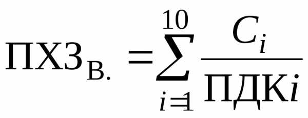 Однако в воздушном бассейне или в водной среде находится не одно, а несколько вредных веществ, причем многие из них способны образовывать новые соединения. Сумма концентрации веществ в таком случае не должна превышать единицу (