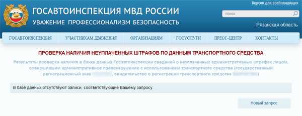 Если Вы все ввели правильно и за Вашим автомобилем не числятся штрафы ГИБДД, то Вы получите следующее сообщение: