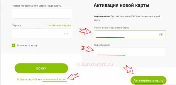 - введите данные карты Кукуруза на сайте интернет магазина;